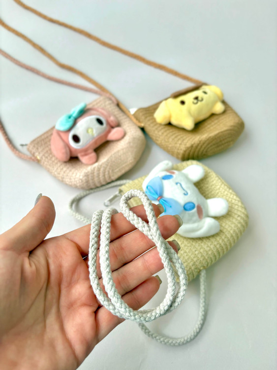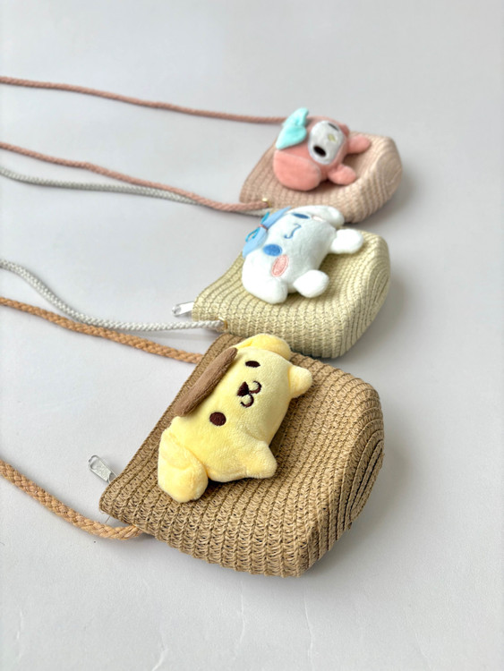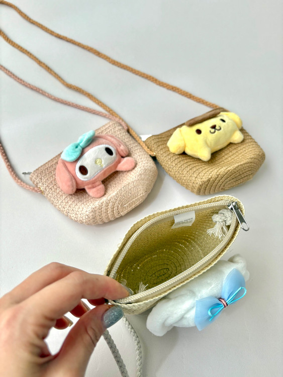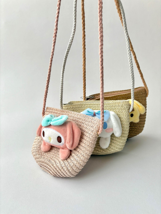 کیف دوشی حصیری خانواده سانریو وارداتی بچگانه