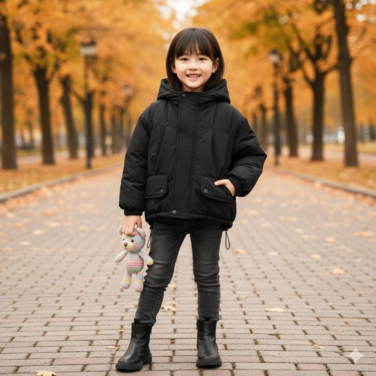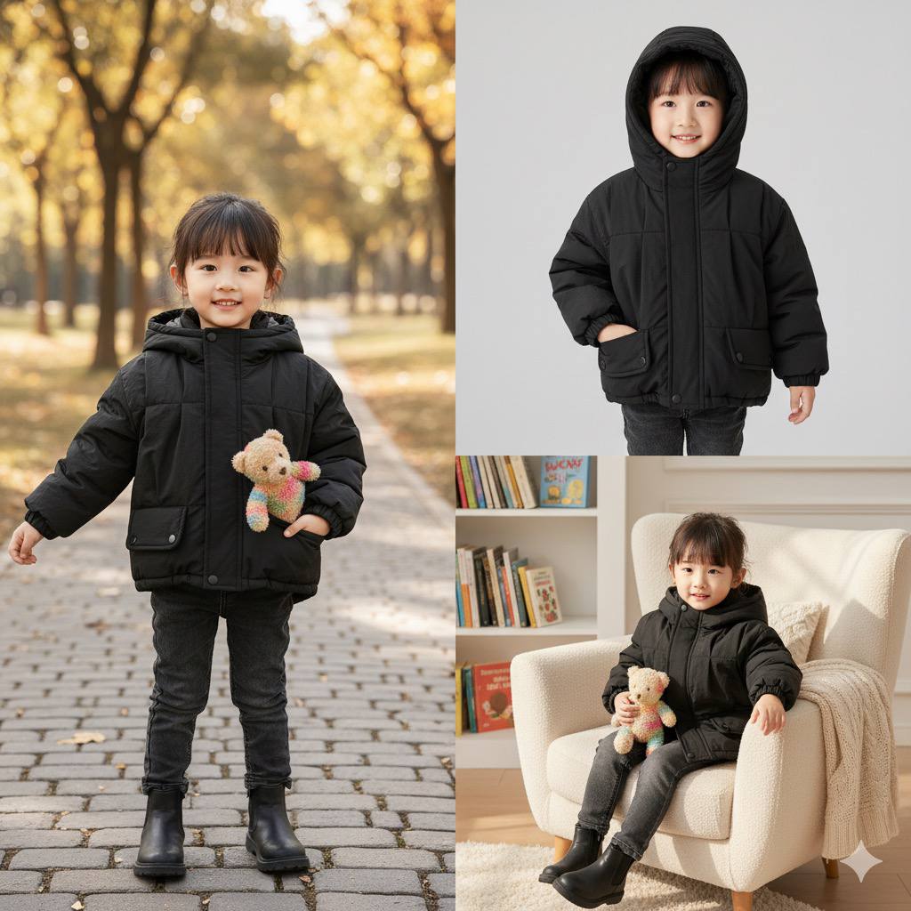 کاپشن مشکی بچگانه تک رنگ وارداتی