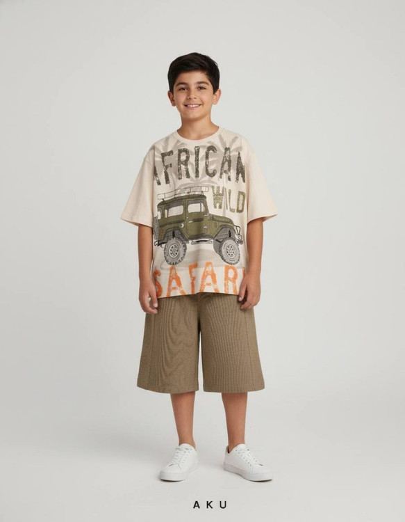 ست تیشرت و شلوارک چاپی بچگانه آکو
