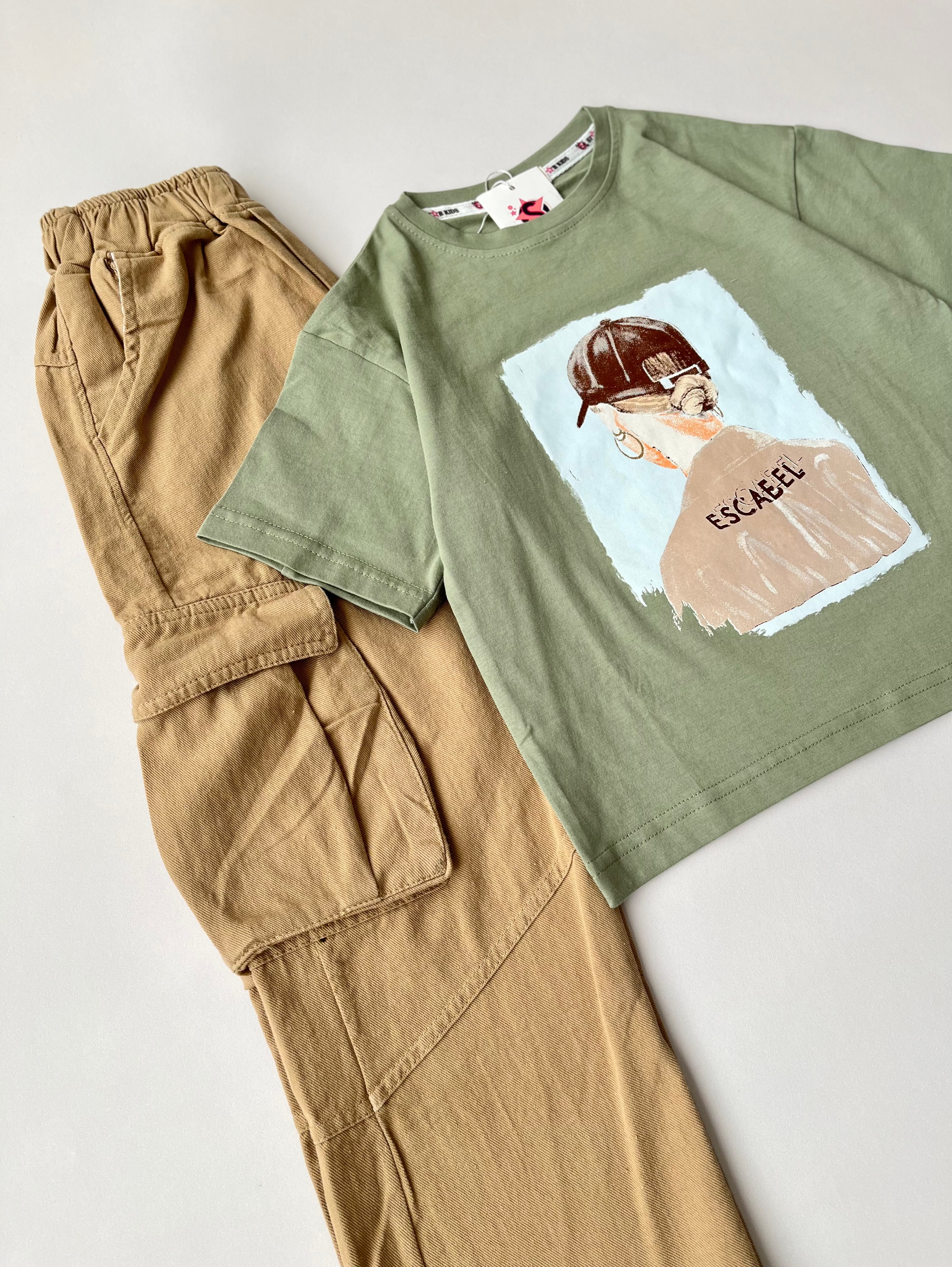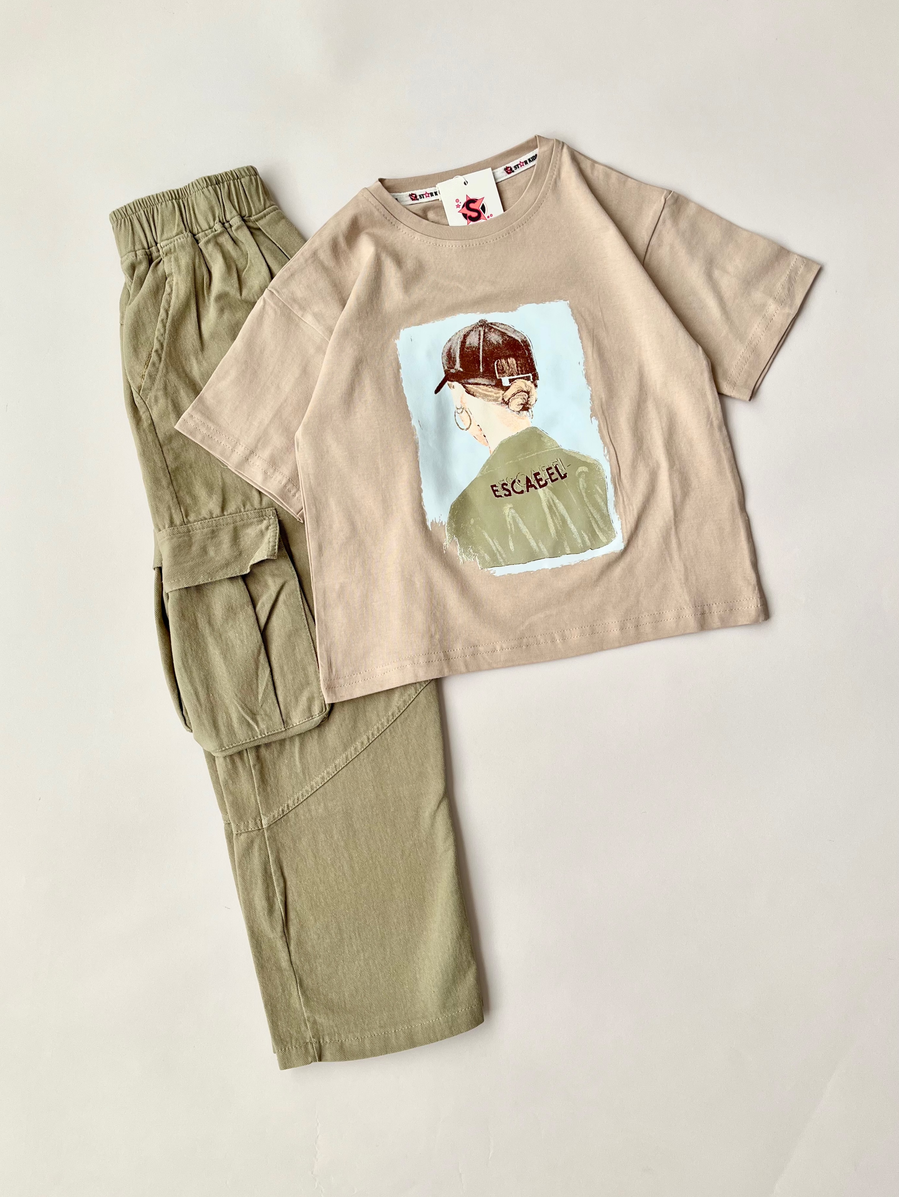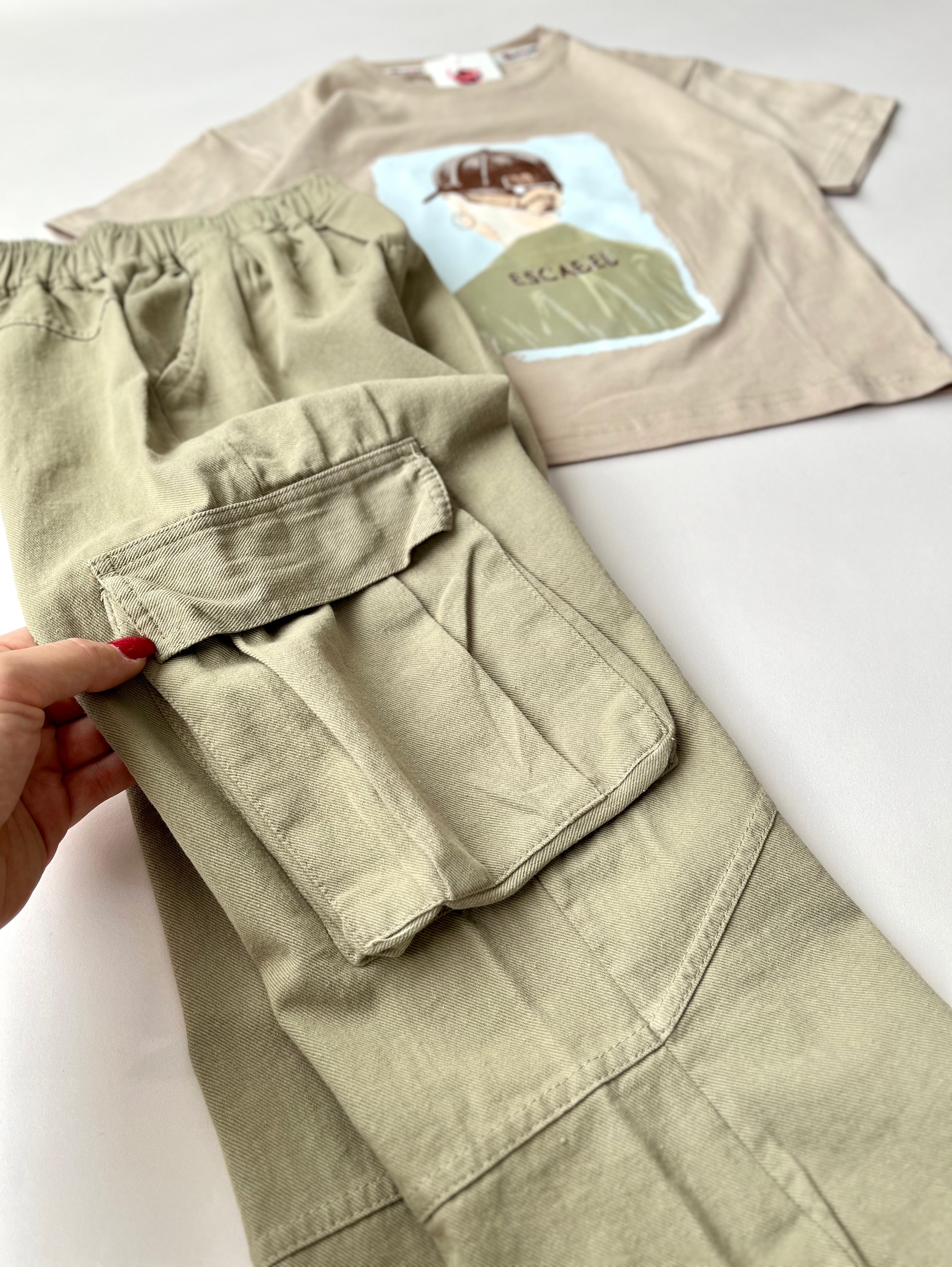 ست تیشرت و شلوار کتان کارگو بچگانه