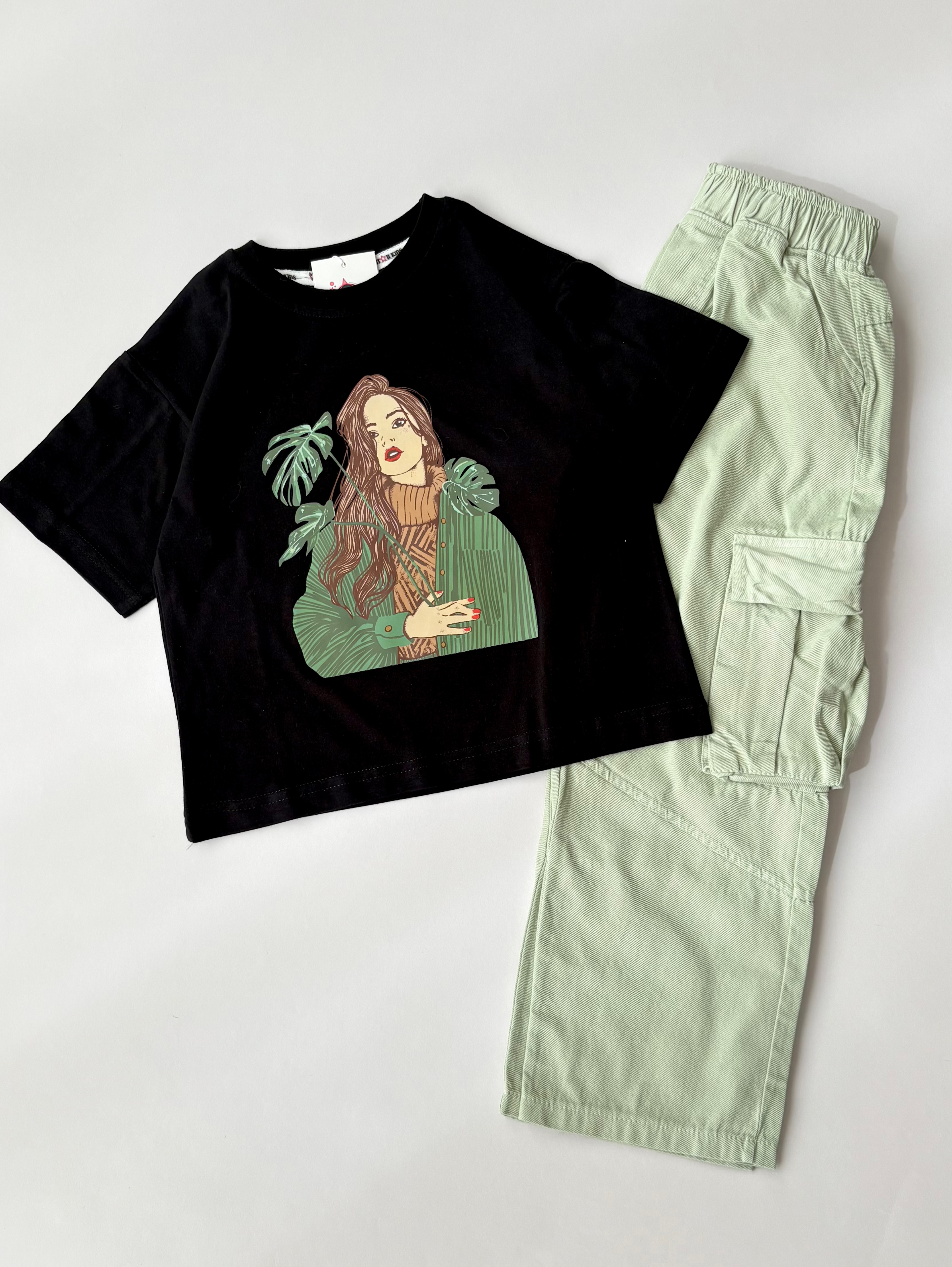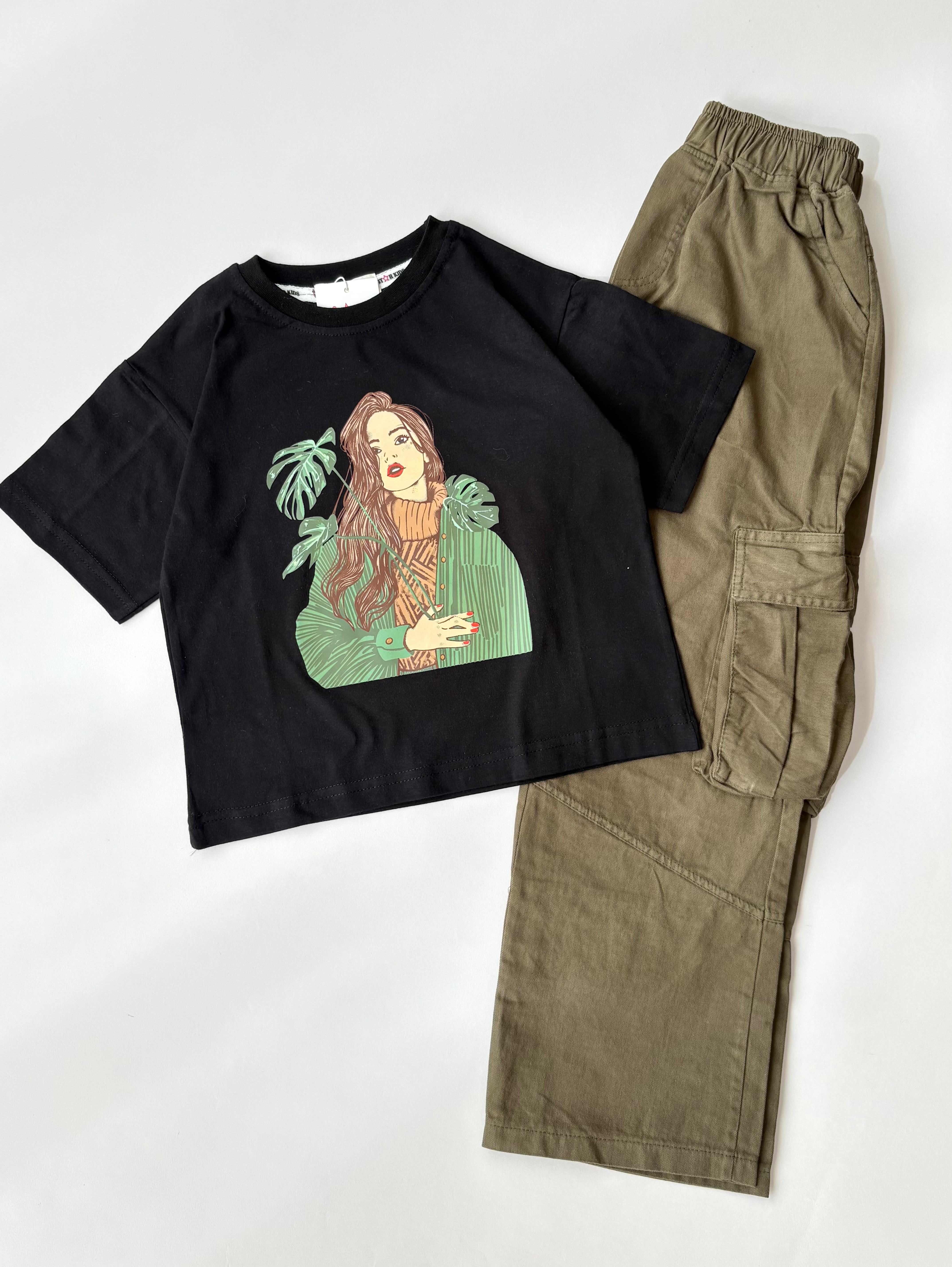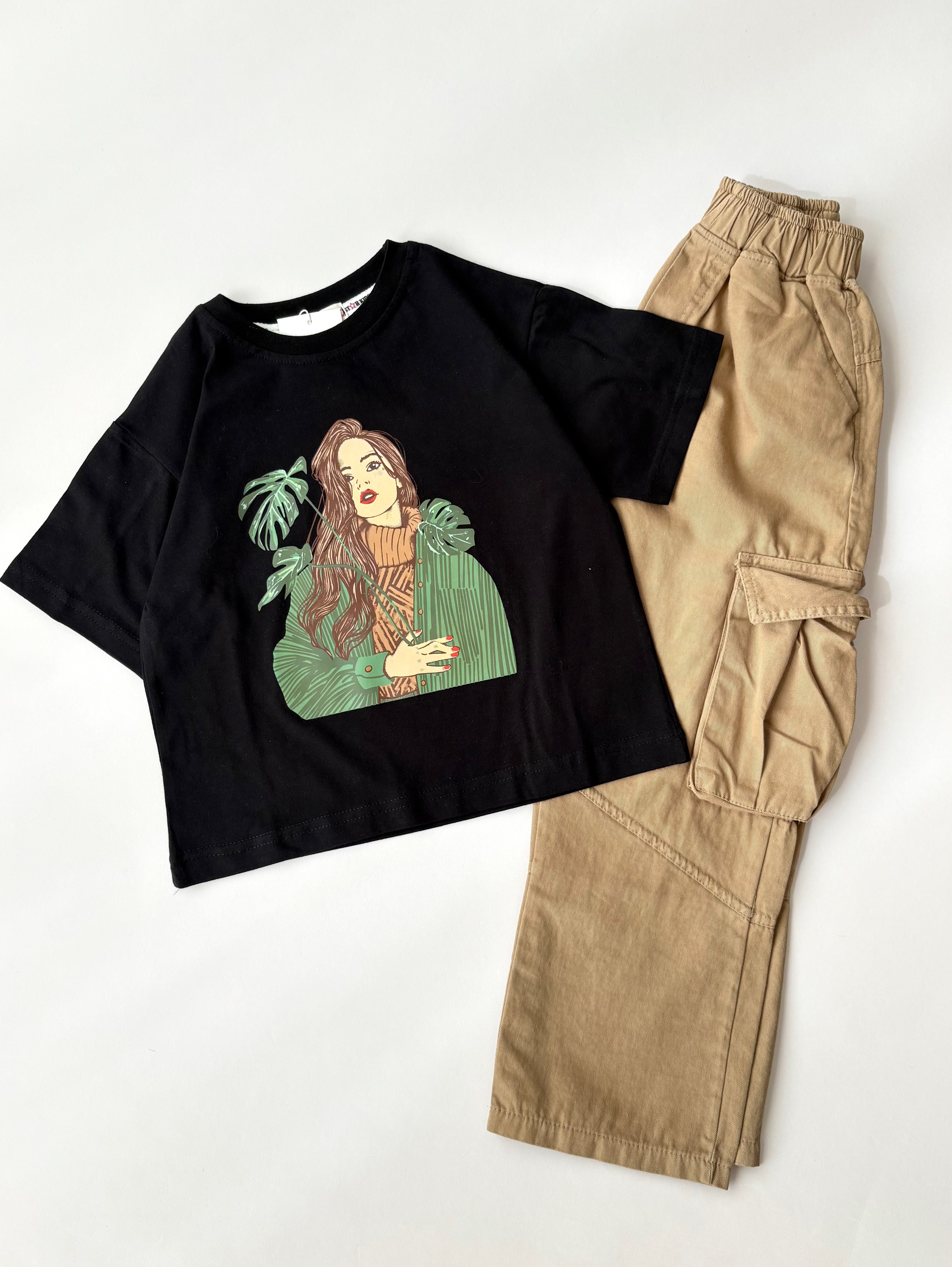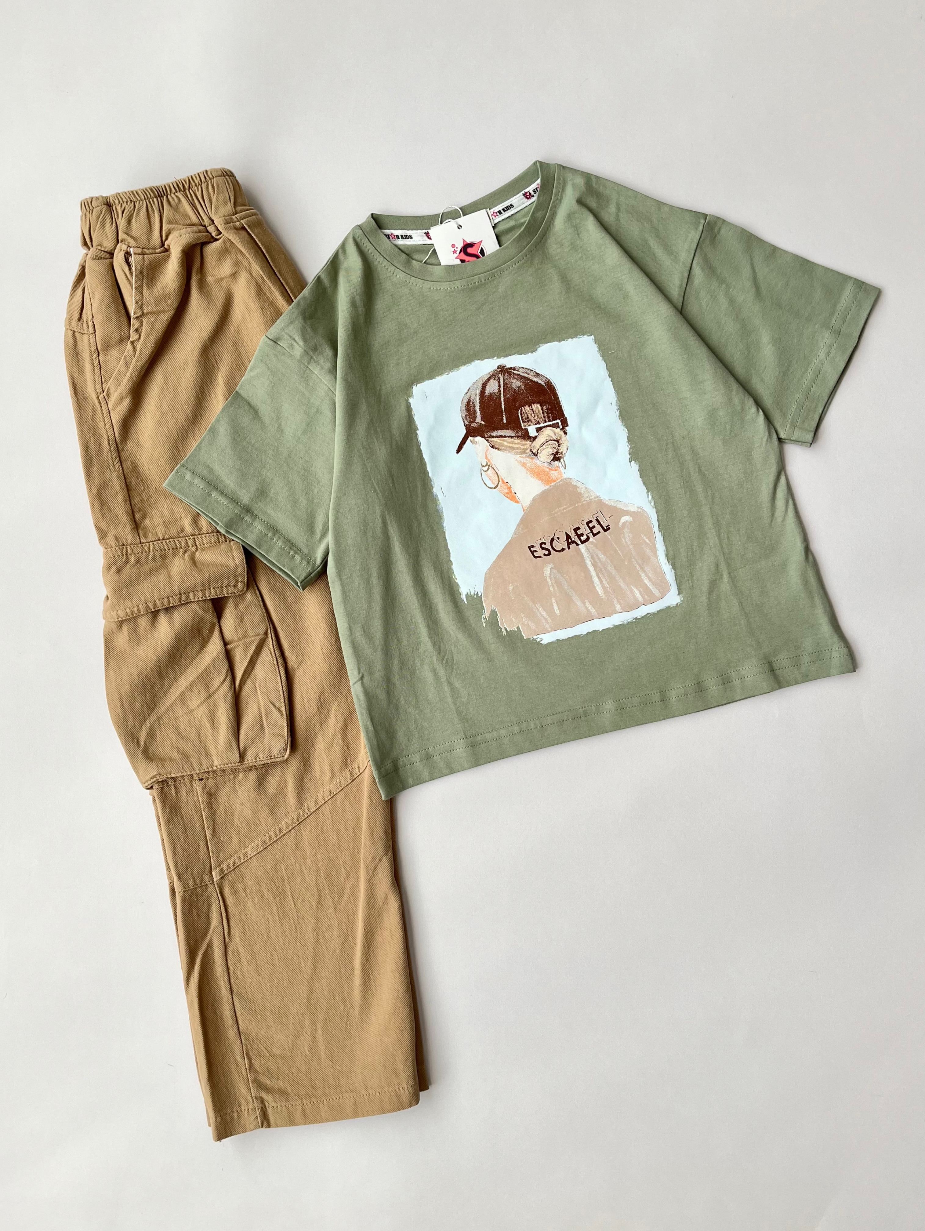 ست تیشرت و شلوار کتان کارگو بچگانه
