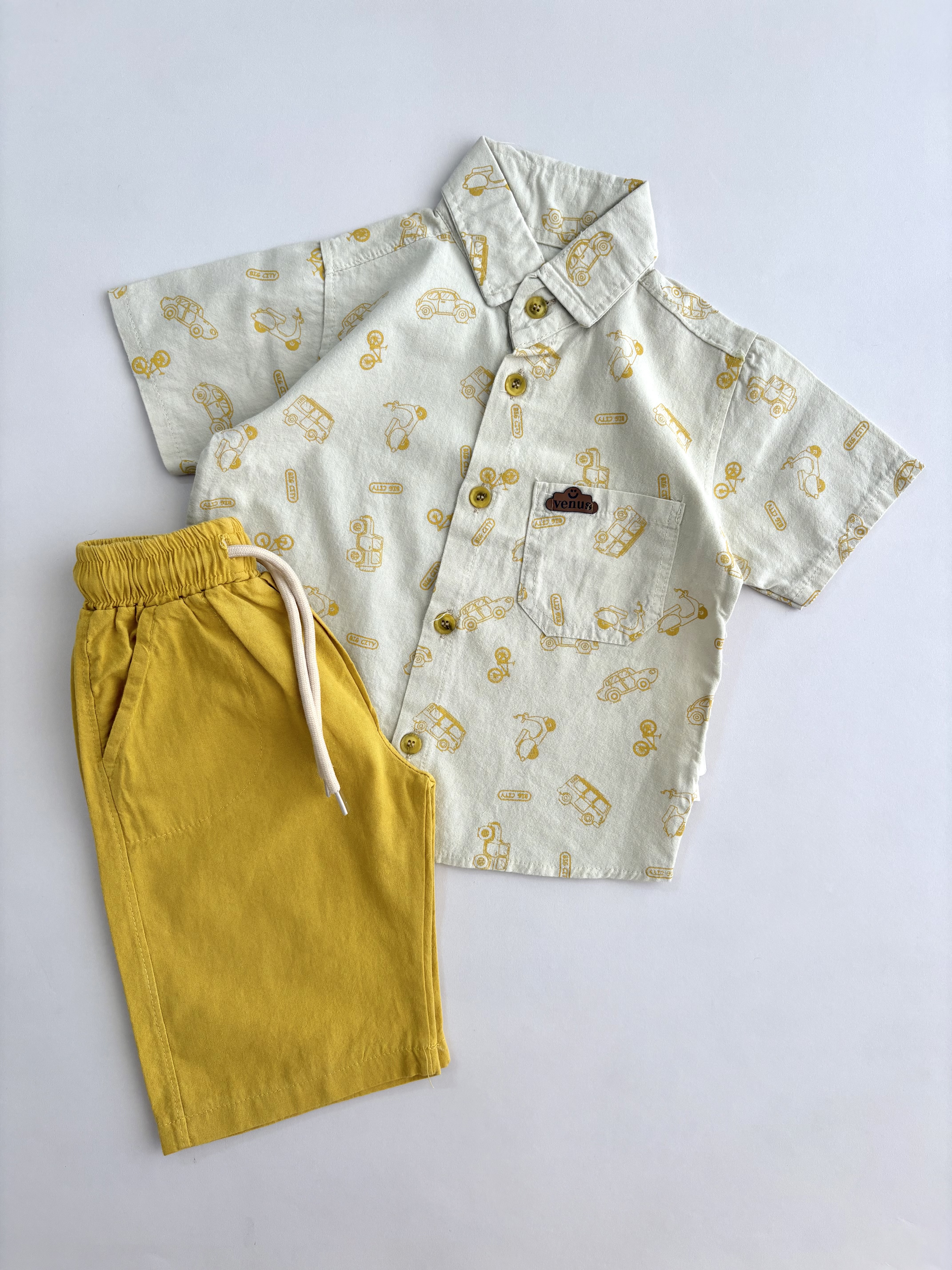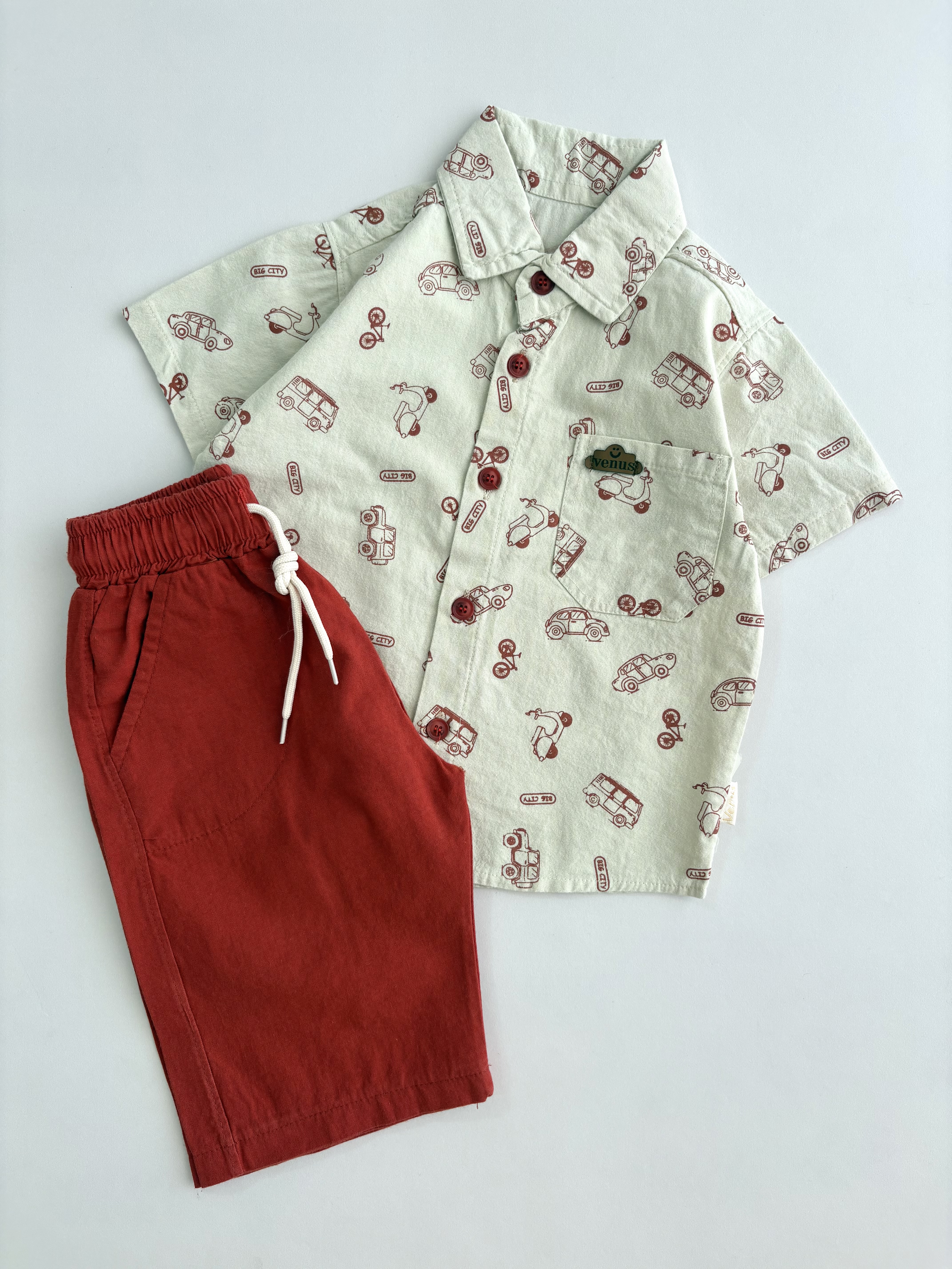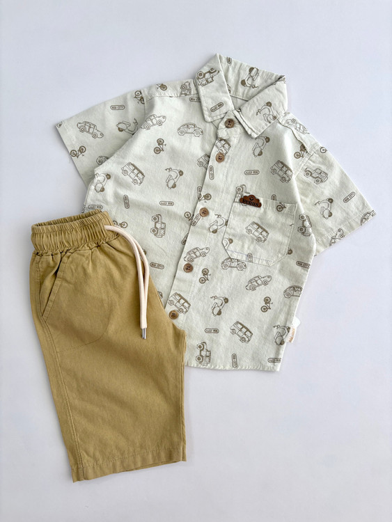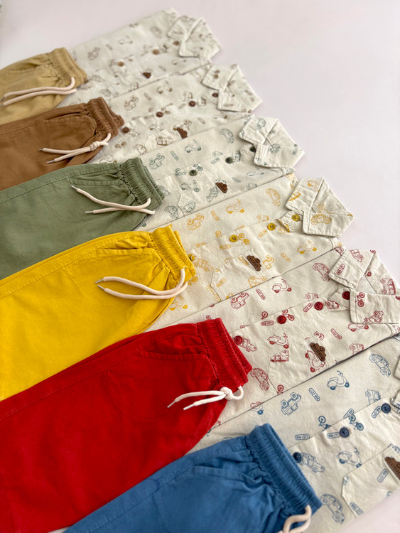 ست پیراهن و شلوارک طرح ماشین بچگانه