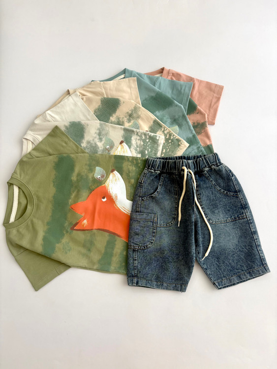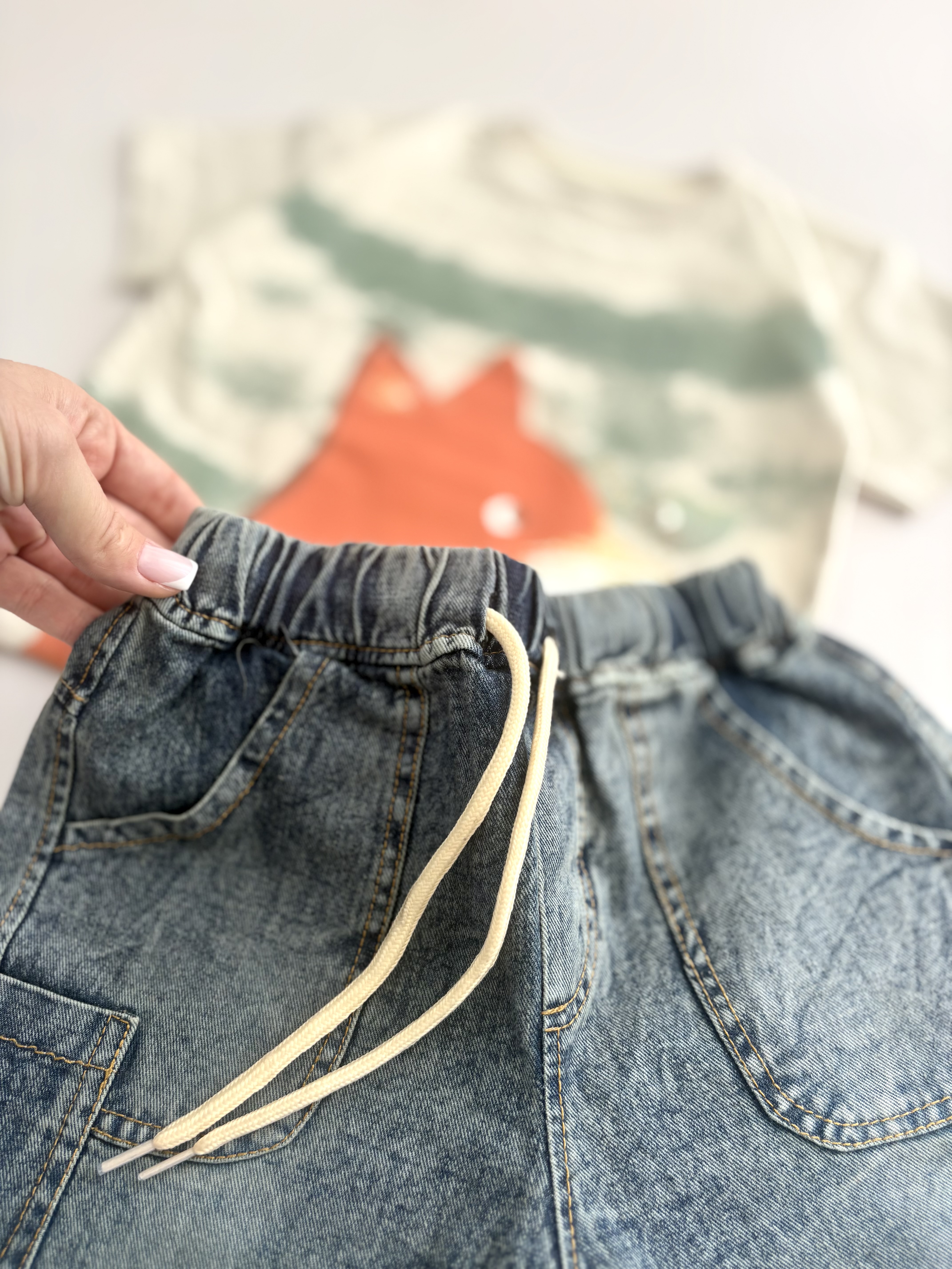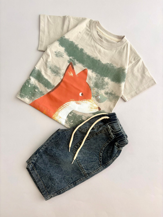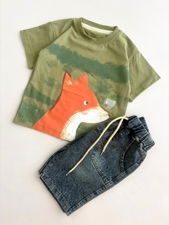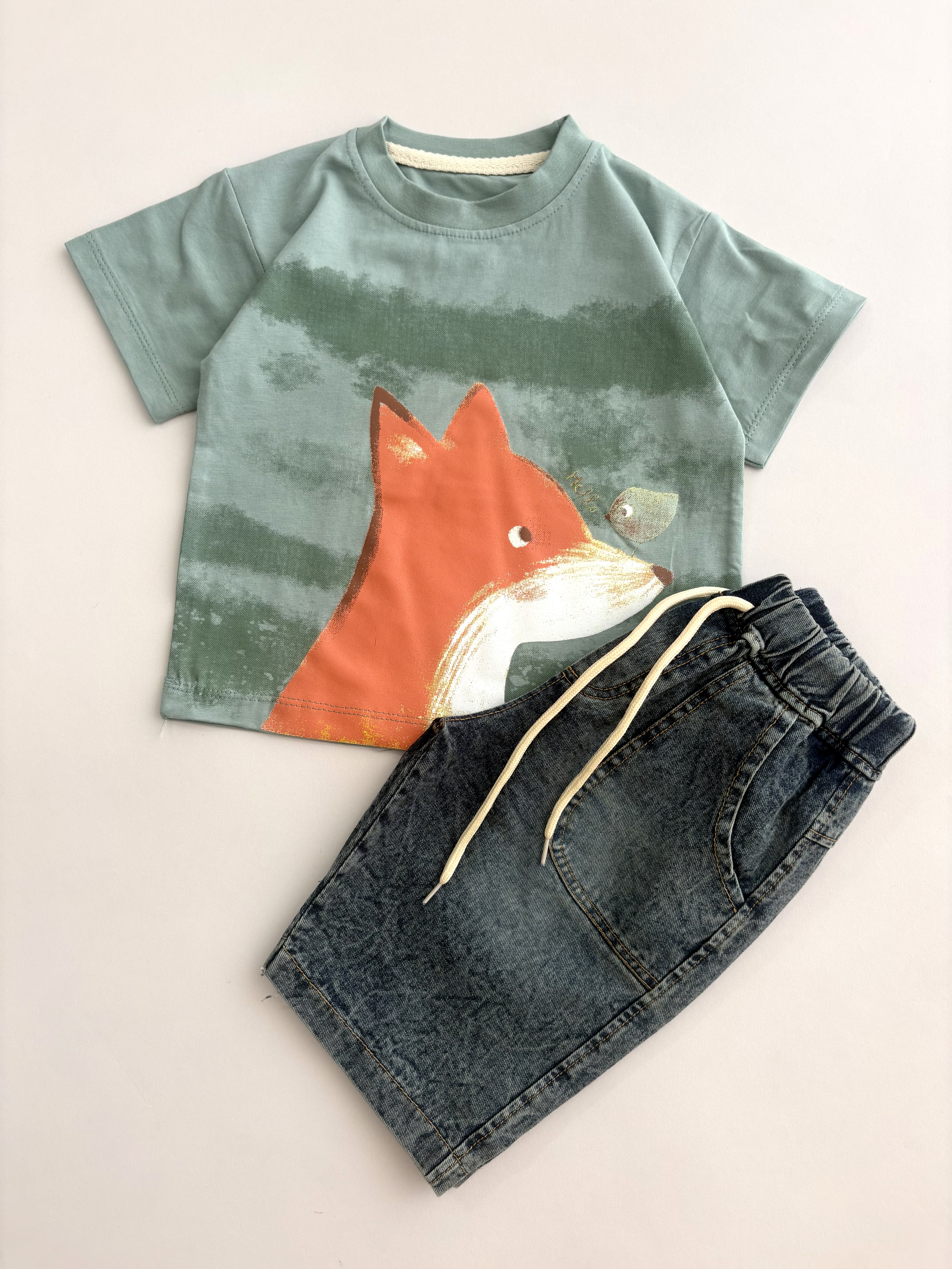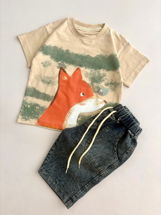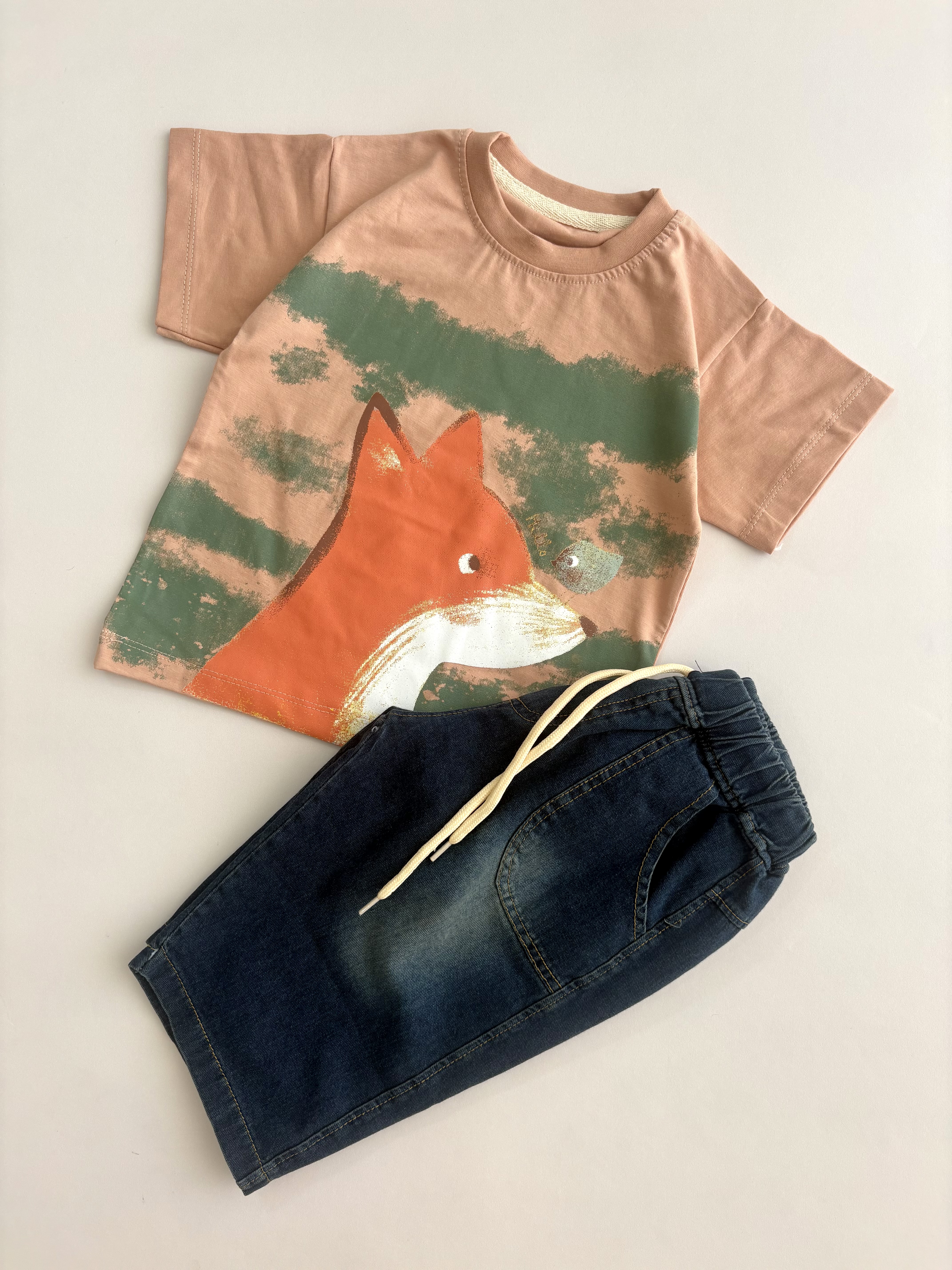 ست تیشرت و شلوارک جین روباه و گنجشک بچگانه
