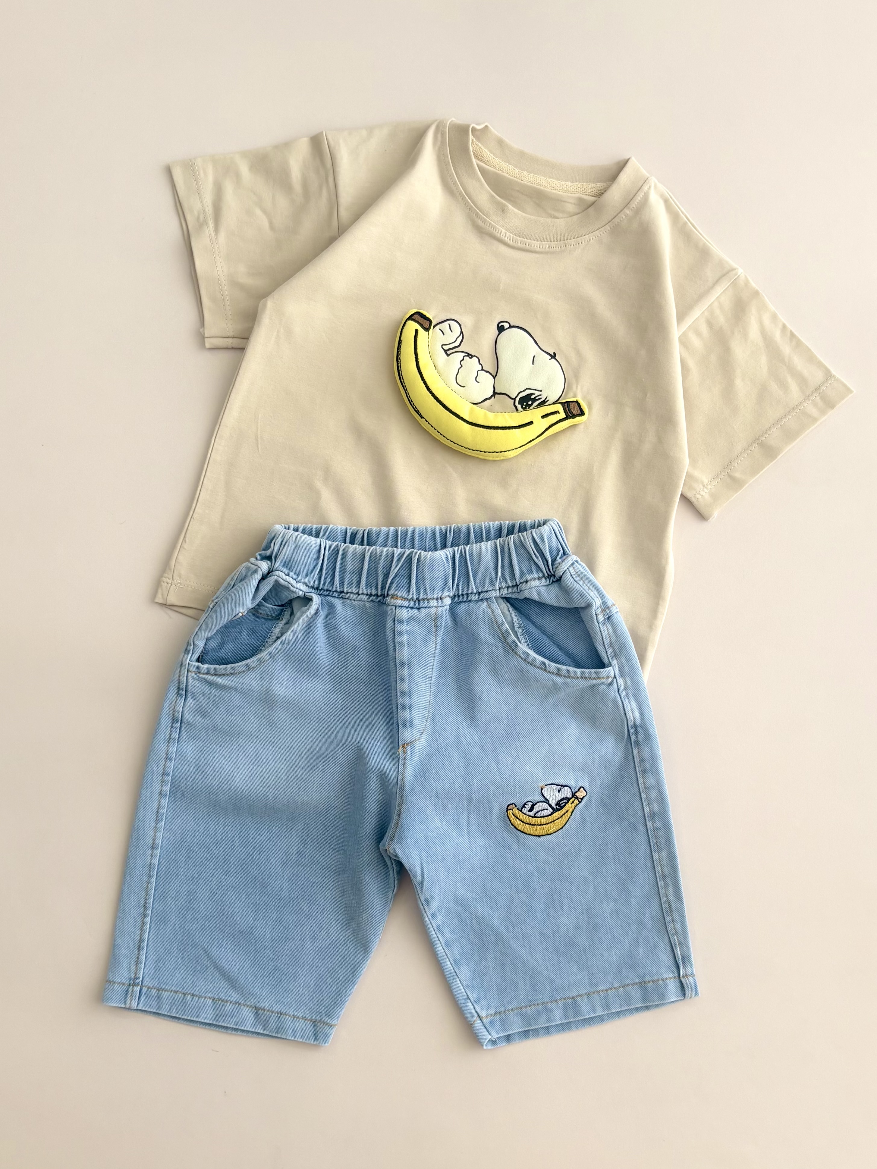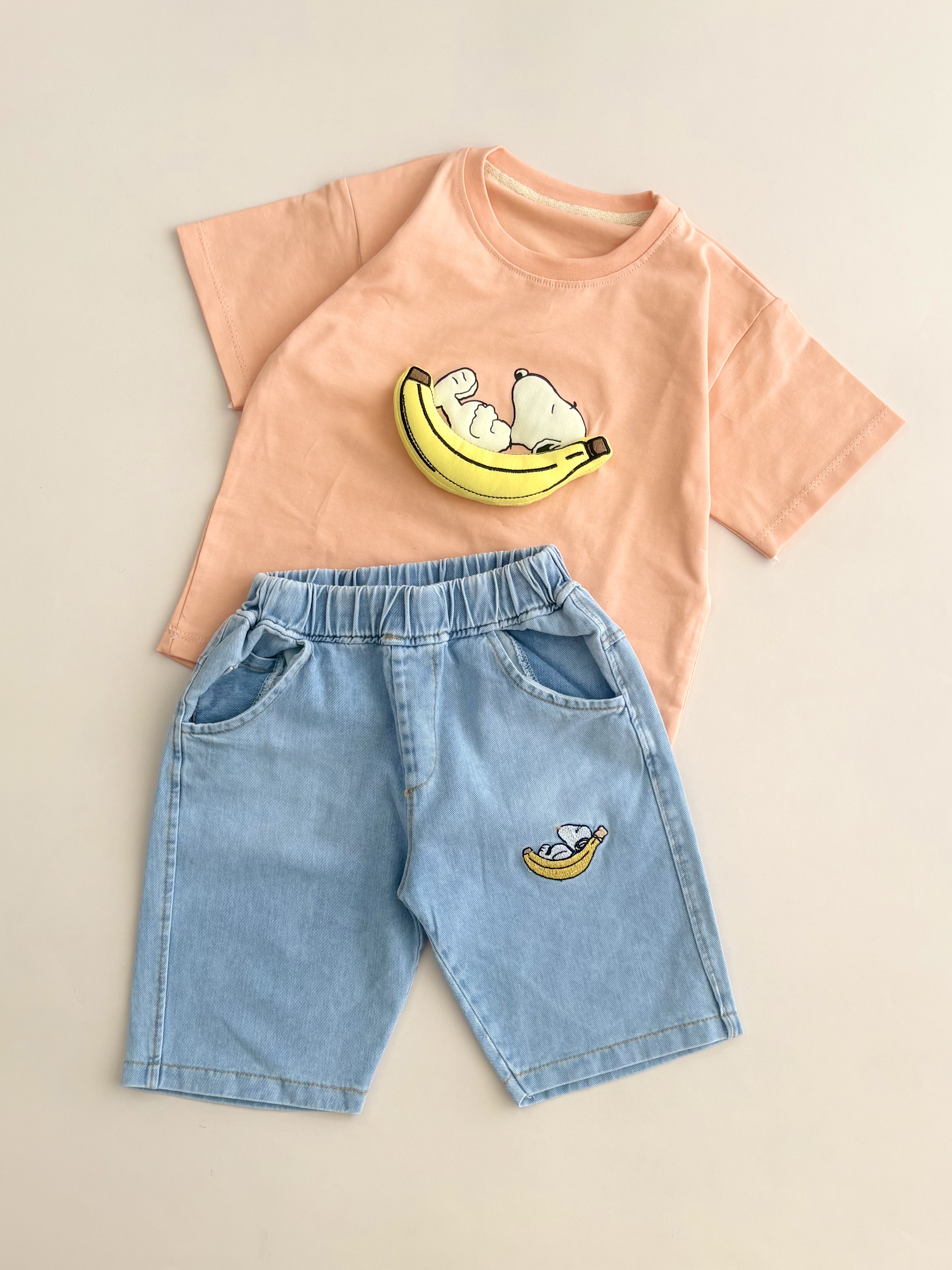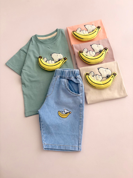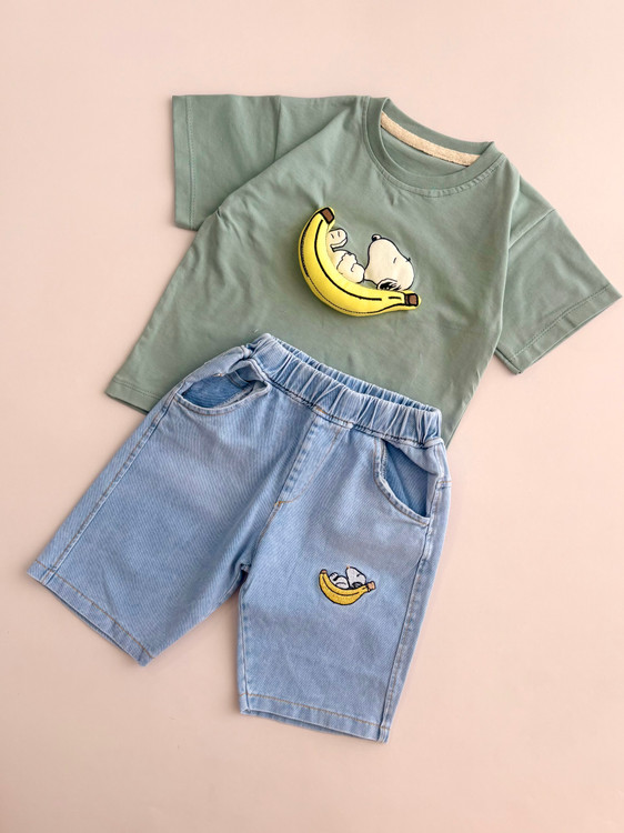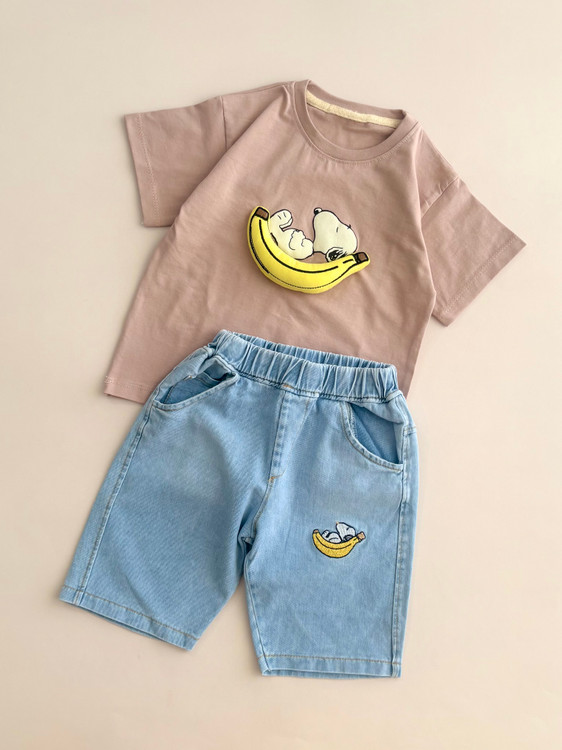 ست تیشرت و شلوارک جین اسنوپی بچگانه